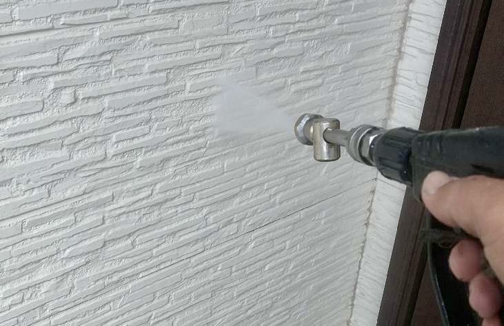 高圧洗浄は、塗料の密着を阻害する汚れや、浮いている旧塗膜の一部などを効果的に除去する役割を果たします。
