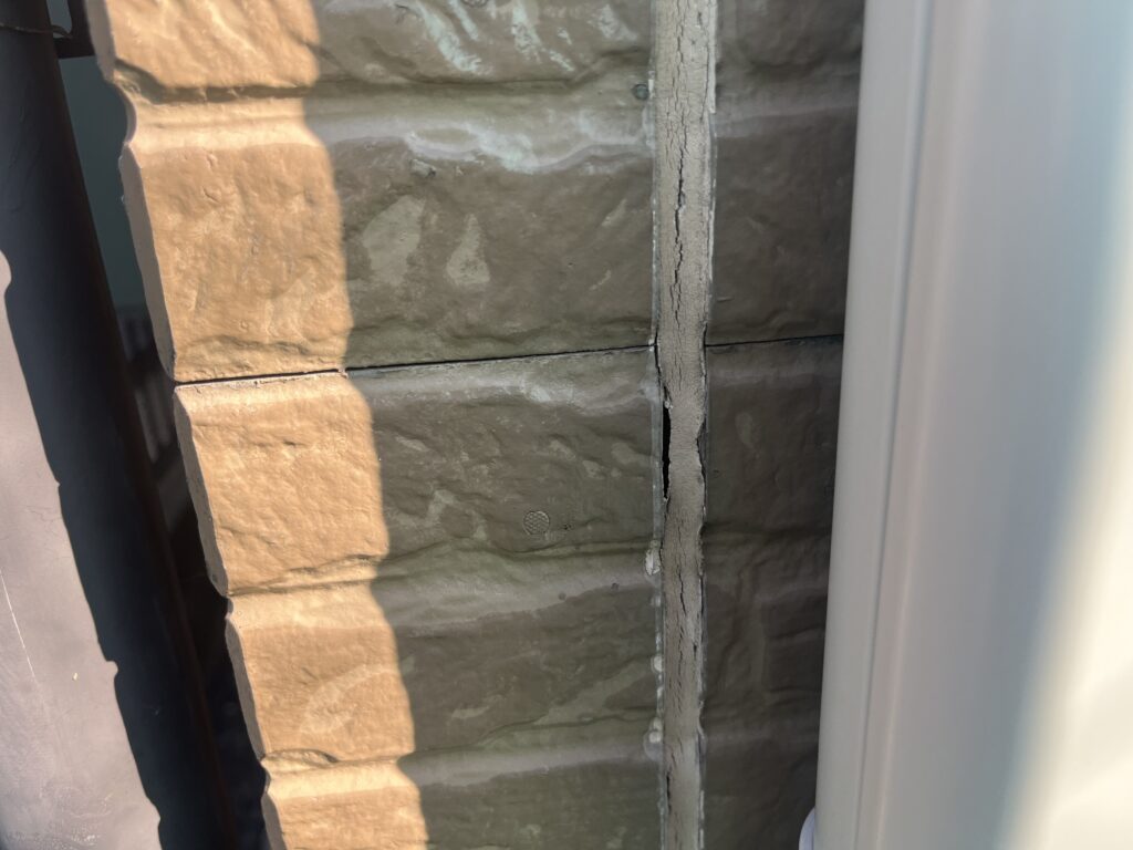 サイディングの目地コーキングにひび割れや硬化が見られました。コーキングは外壁の防水性を保つ重要な部分のため、既存コーキングを撤去し新しく打ち替えを行いました。