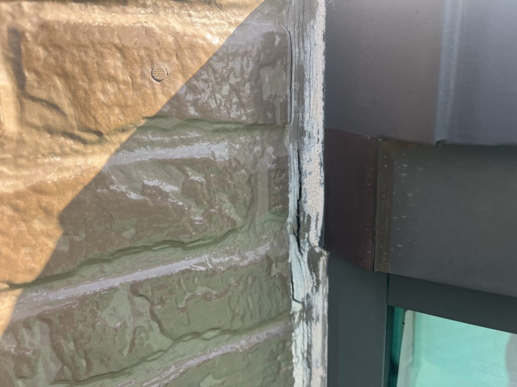 サッシ周りなど開口部のコーキングに劣化が見られました。雨水の侵入を防ぐため、古いコーキングを撤去し新しく打ち替えを行い防水性を回復させました。