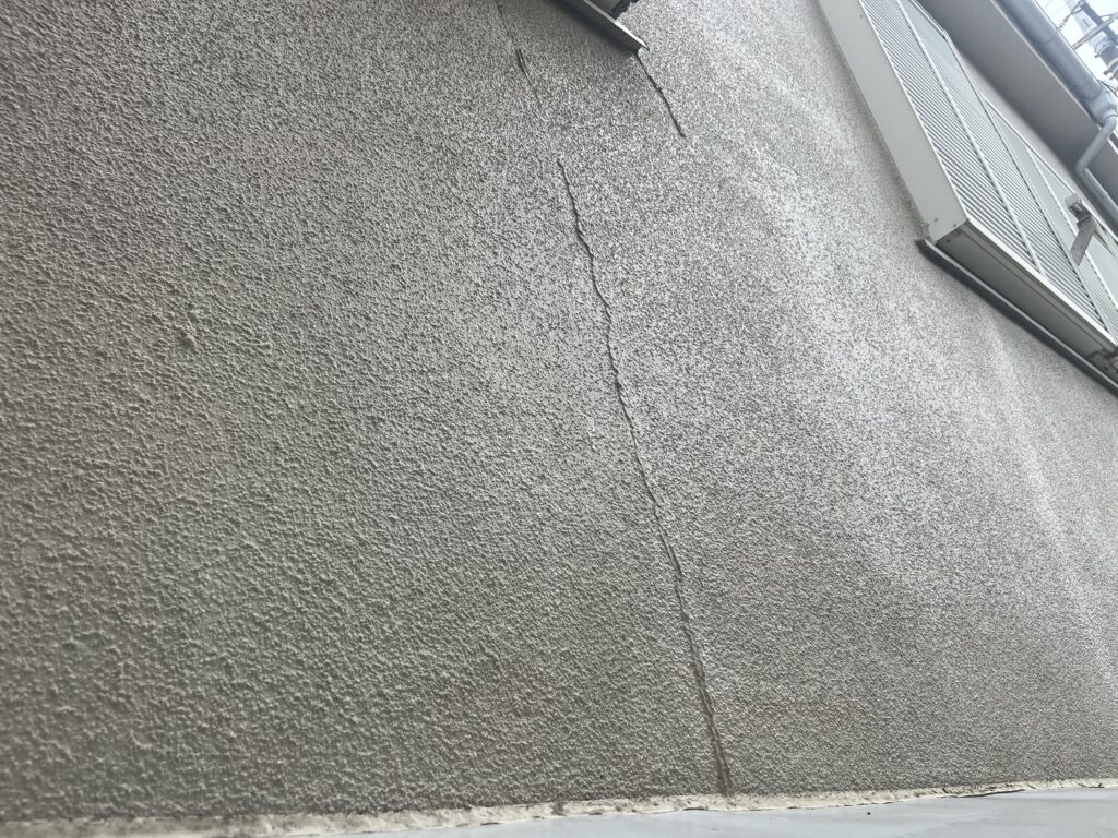 ひび割れは放置すると雨水の侵入や劣化の原因となるため、今回は専用の下地処理材を用いて丁寧に補修を実施しました。